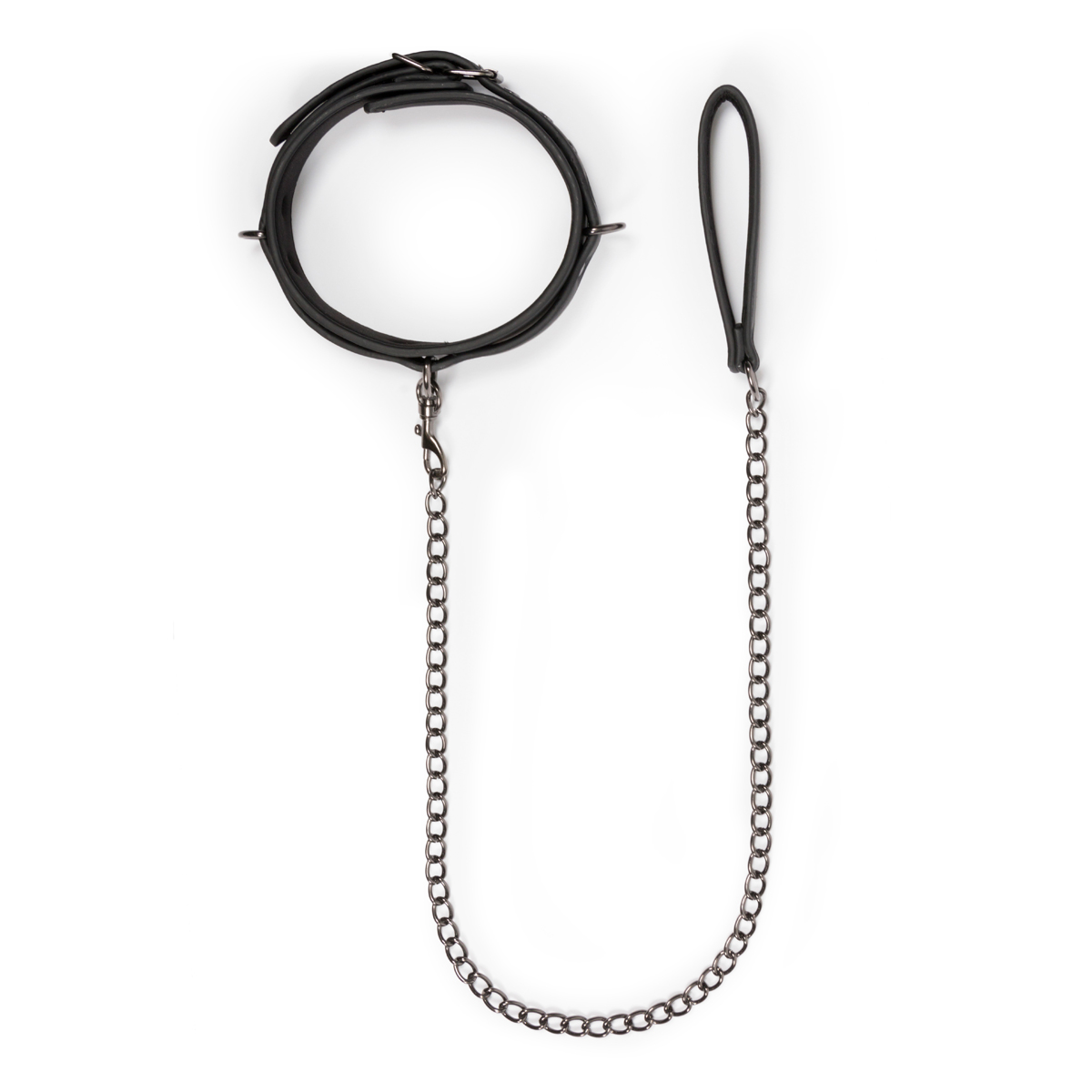 Tenete il vostro sub sempre al vostro fianco con questo collare bondage con guinzaglio. Fatto in metallo e in resistente pelle ecologica imbottita di spugna, in questo modo potrà sopportare anche il trattamento più duro ma sarà sempre comoda da indossare. Il collare è regolabile da 40 a 54 cm per adattarsi a diversi tipi di corporatura. Il guinzaglio è attaccato al collare tramite un moschettone, in questo modo potrete separarli facilmente e attaccarli anche altri giocattoli, come manette, pinze per capezzoli e imbracature. Così avrete infinite possibilità e potrete vivere un'esperienza di bondage creativa e personalizzata.