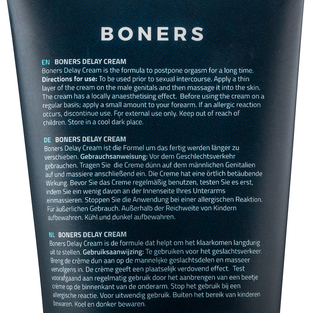 Prova il piacere senza fine con la crema ritardante Boners Delay. La crema ritarda l'orgasmo e ti assicura di goderti l'erezione per un periodo di tempo più lungo. La formula liscia come la seta della crema è molto confortevole sulla pelle.
