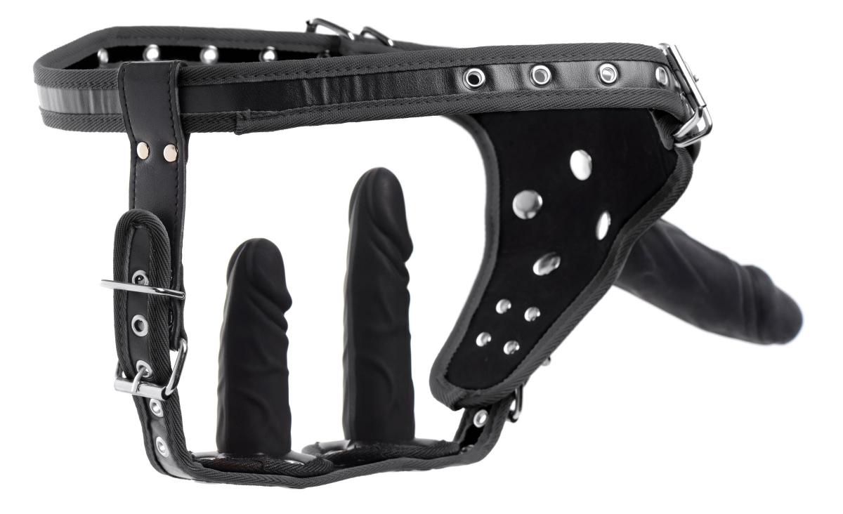 Realizza i tuoi sogni più sfrenati e scegli questo eccitante set di pegging! L'unicità di questa imbracatura sexy è che sia chi lo indossa che il ricevente possono godere in modo ottimale di una deliziosa stimolazione. L'imbracatura viene fornita con 3 dildo in silicone di diverse dimensioni e questi sono intercambiabili in modo da poter provare più combinazioni. Puoi scegliere di utilizzare solo 1 dildo o tutti e 3 contemporaneamente. Ciò consente a chi lo indossa di sperimentare la stimolazione anale e vaginale mentre penetra il suo partner con il 3° dildo.
