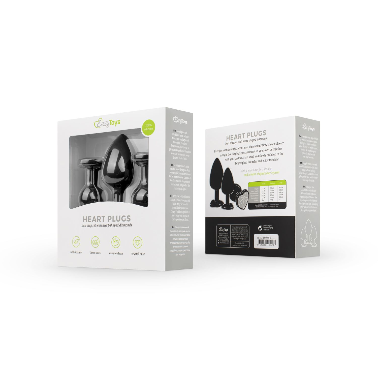 Dieses 3-teilige Butt Plug Set ist für alle perfekt, die die Analstimulation entdecken möchten. Die Analplugs haben unterschiedliche Maße, sodass Sie klein anfangen und in Ihrem eigenen Tempo einen Schritt nach dem anderen weiter gehen können. Die Stöpsel sind aus wunderbar weichem, für den Körper ungefährlichem Silikon für eine komfortable Nutzung. Die flache Basis der Analplugs garantieren den sicheren Gebrauch. In der Basis ist auch ein schöner Stein eingesetzt, der den Steckern ein luxuriöses Aussehen verleiht.