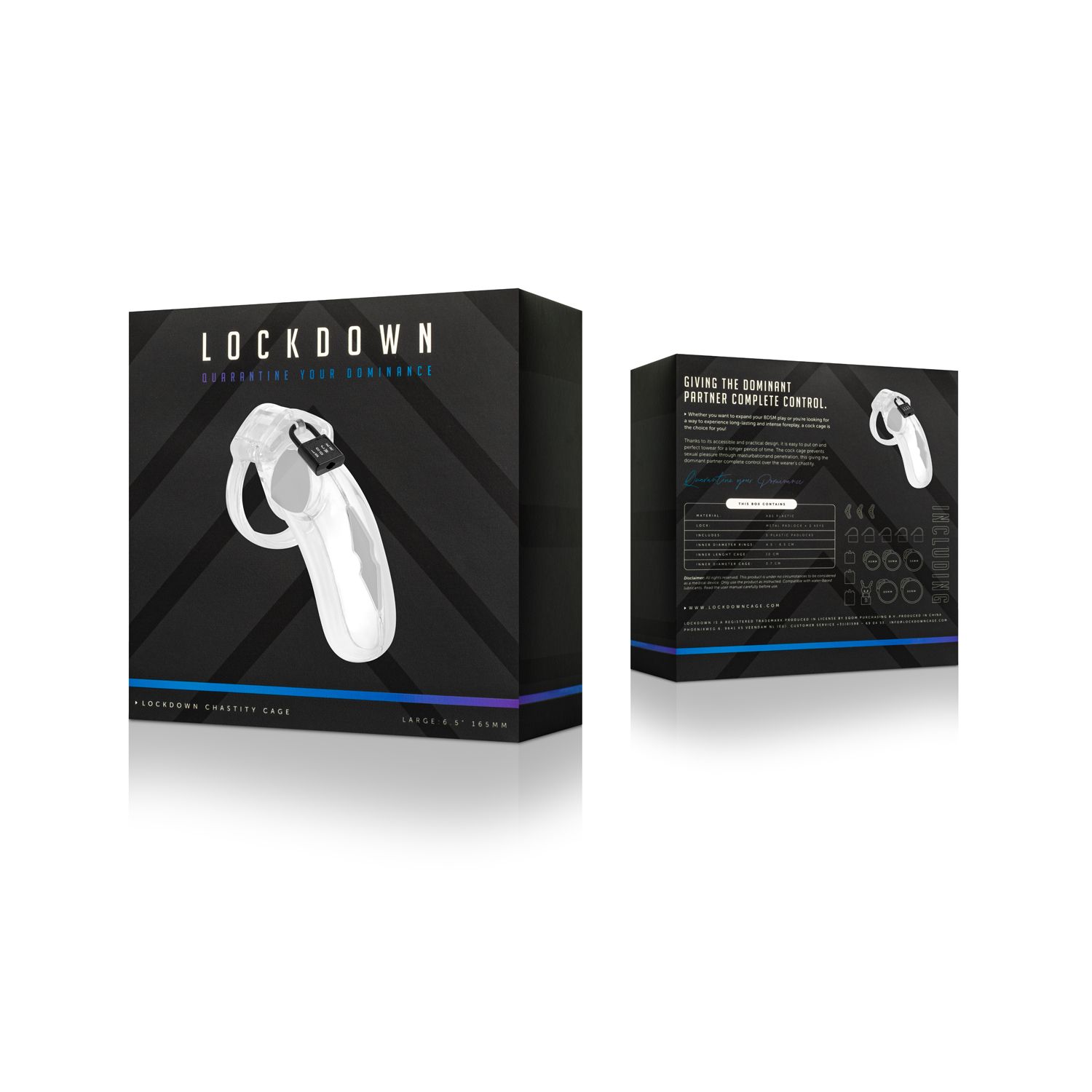 Sind Sie bereit für ein aufregendes Bondage-Erlebnis? Dieser Lockdown-Keuschheitskäfig macht es dem Träger unmöglich, eine Erektion zu bekommen. Der transparente Käfig ermöglicht es Ihnen jedoch weiterhin hindurchzusehen. Der Käfig kann sogar mehrere Tage hintereinander für intensives Vorspiel getragen werden. Die Öffnung vorne ermöglicht es dem Träger, zu urinieren, ohne den Käfig abnehmen zu müssen. Dieses großartige Set wird mit 5 Ringen in verschiedenen Größen für eine perfekte Passform (4,5 - 6,5 cm) geliefert. Es enthält auch ein Metallschloss mit 2 Schlüsseln und 5 nummerierten Plastikschlössern. Die Plastikschlösser können nach Gebrauch mit einer Schere vom Käfig abgeschnitten werden. Die einzigartigen Nummern auf jedem Vorhängeschloss stellen sicher, dass der Träger den Keuschheitskäfig nicht heimlich entfernen und danach ein neues Vorhängeschloss anlegen kann, ohne erwischt zu werden!
