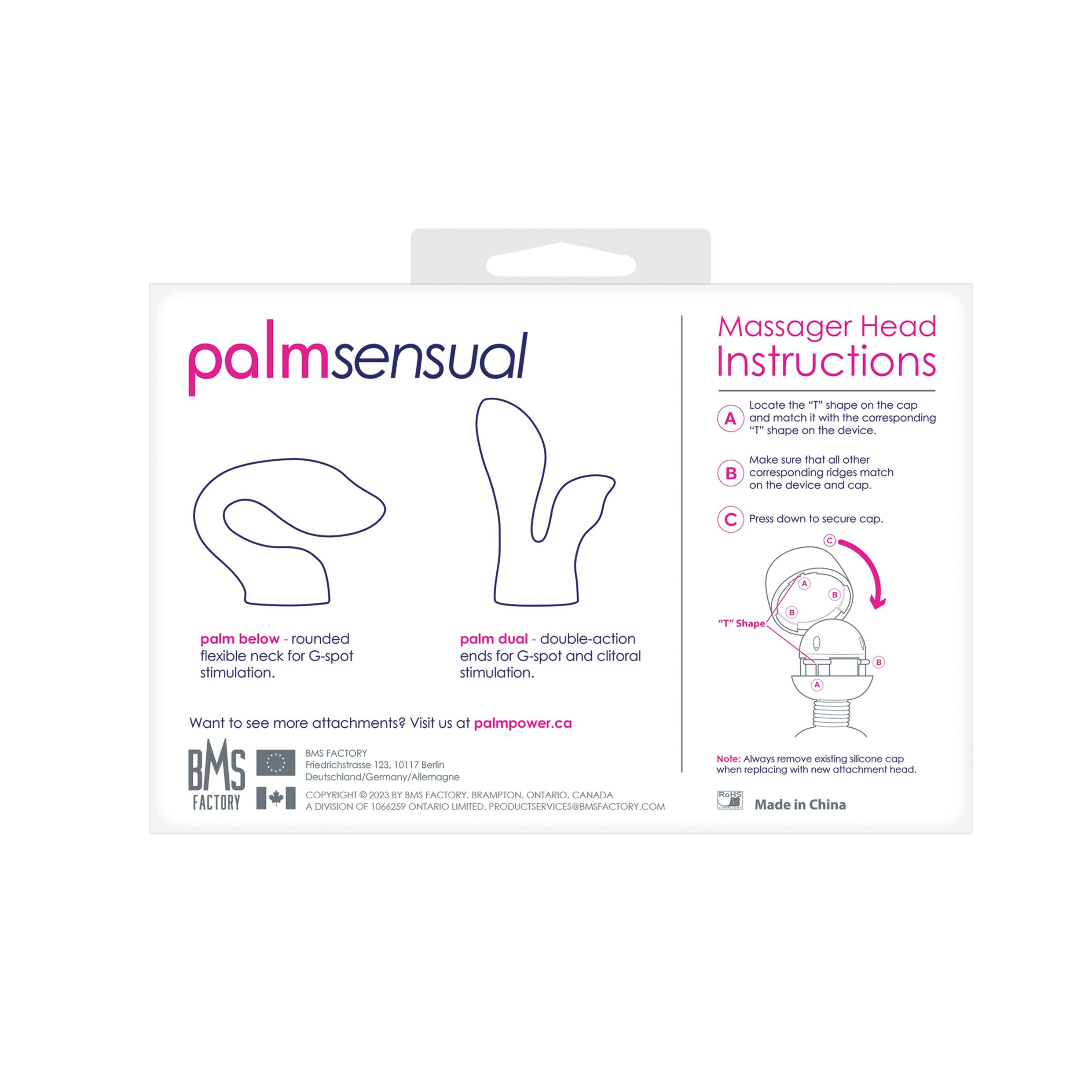Verleihe deinem PalmPower ein Upgrade mit den PalmSensual-Aufsätzen: zwei hochwertige Silikonköpfe, die deinen Wand-Massager noch vielseitiger machen. Der PalmBelow hat einen gebogenen, flexiblen Hals für intensive G-Punkt-Stimulation, während der PalmDual zwei Spitzen für gleichzeitige vaginale und klitorale Reize bietet. Beide Aufsätze bestehen aus 100 % körpersicherem Silikon, sind fest und dennoch flexibel mit seidig-glatter Oberfläche. Einfaches Anbringen dank des T-förmigen Verriegelungssystems. Verwende wasserbasiertes Gleitgel und reinige vor und nach dem Gebrauch. Kompatibel mit PalmPower Plug-In, Plug & Play und Recharge (nicht mit Pocket oder Extreme).