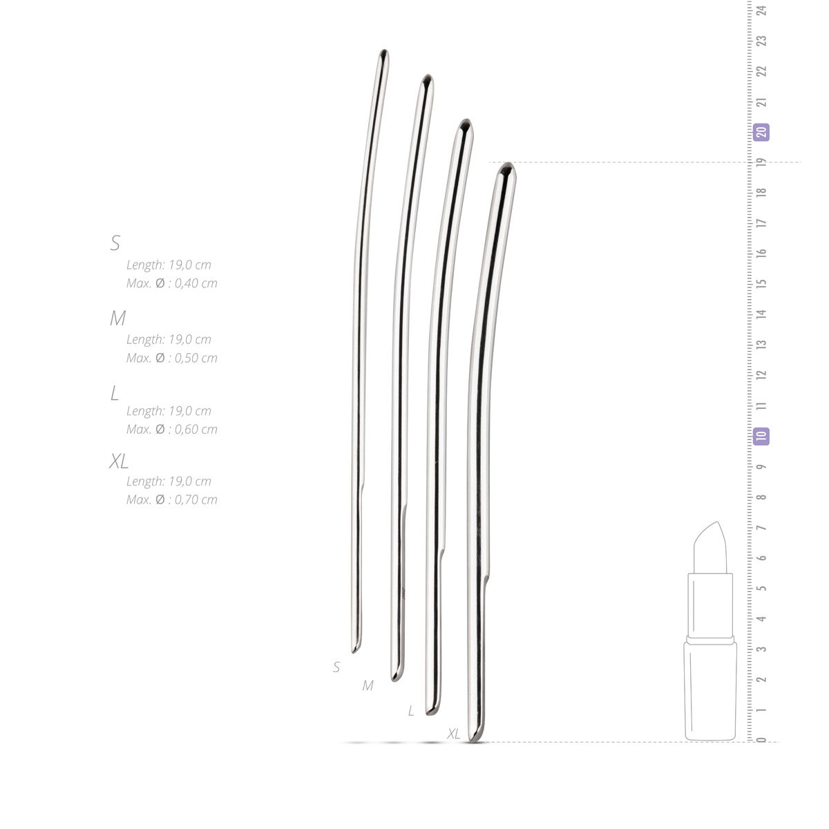 Questo set di dilatatori della collezione Sinner Gear è adatto per gli uomini che sono pronti per una sfida. Il set è composto da 4 dilatatori con un diametro di 4, 5, 6 e 7 mm. Tutti e quattro i dilatatori sono realizzati in acciaio inossidabile, il che li rende resistenti, durevoli e lisci. I giocattoli non sono pesanti e sono facili da tenere. Grazie alla maniglia piatta hai sempre una buona presa. Pulisci il giocattolo prima e dopo l'uso con un detergente per giocattoli e acqua per un uso igienico.