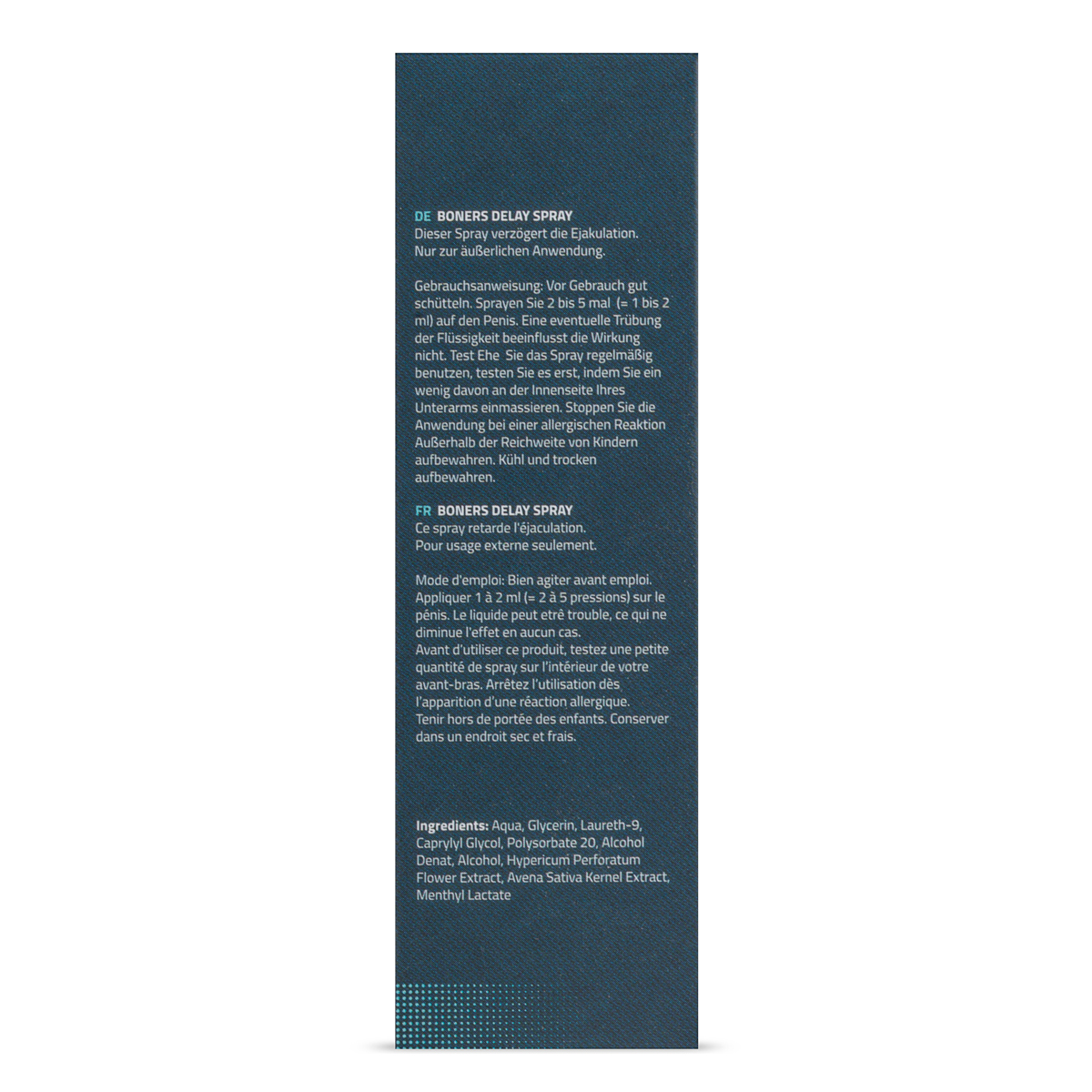 Lo Spray Ritardante Boners ritarda il tuo orgasmo e lo fa durare di più. Aiuta con l'ipersensibilità e può prevenire la delusione in camera da letto. La bottiglietta ha le dimensioni perfette per essere tenuta nel comodino. Il tappo a spray consente di applicare facilmente il prodotto.
