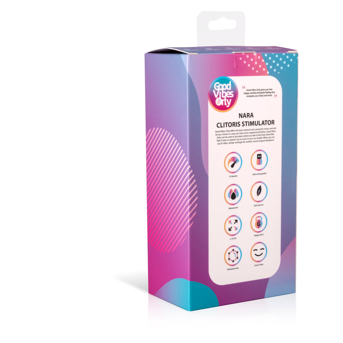 Sarai assolutamente elettrizzata con lo stimolatore del clitoride Nara! Con questo stimolatore, Puoi dare a te stessa o al tuo partner un meraviglioso massaggio. Nara è appositamente progettato per stimolare il clitoride, ma può essere utilizzato anche per i capezzoli e altre zone erogene. Le 10 modalità di vibrazione offrono ulteriore piacere. Nara è impermeabile, quindi Puoi usarlo anche sotto la doccia o il bagno.