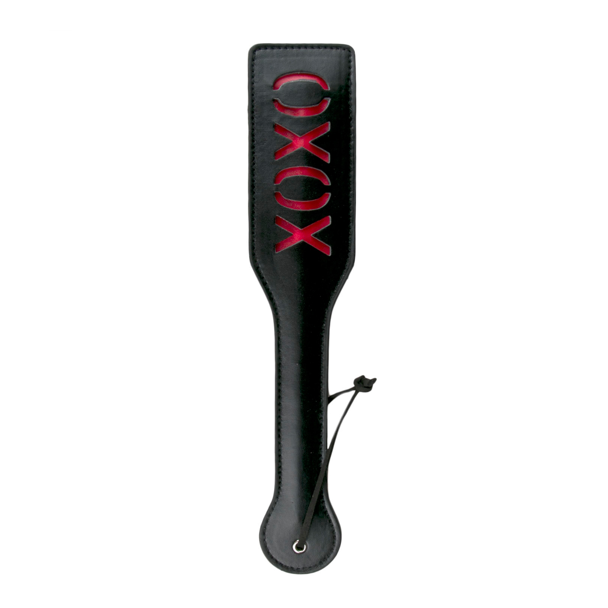 Questo audace paddle nero è perfetto per un eccitante gioco BDSM kinky! Il paddle è realizzato in ecopelle resistente e ha una presa comoda. Dà al tuo partner un colpetto affettuoso o un colpo più provocante e deciso, lascia libero sfogo alla tua fantasia!