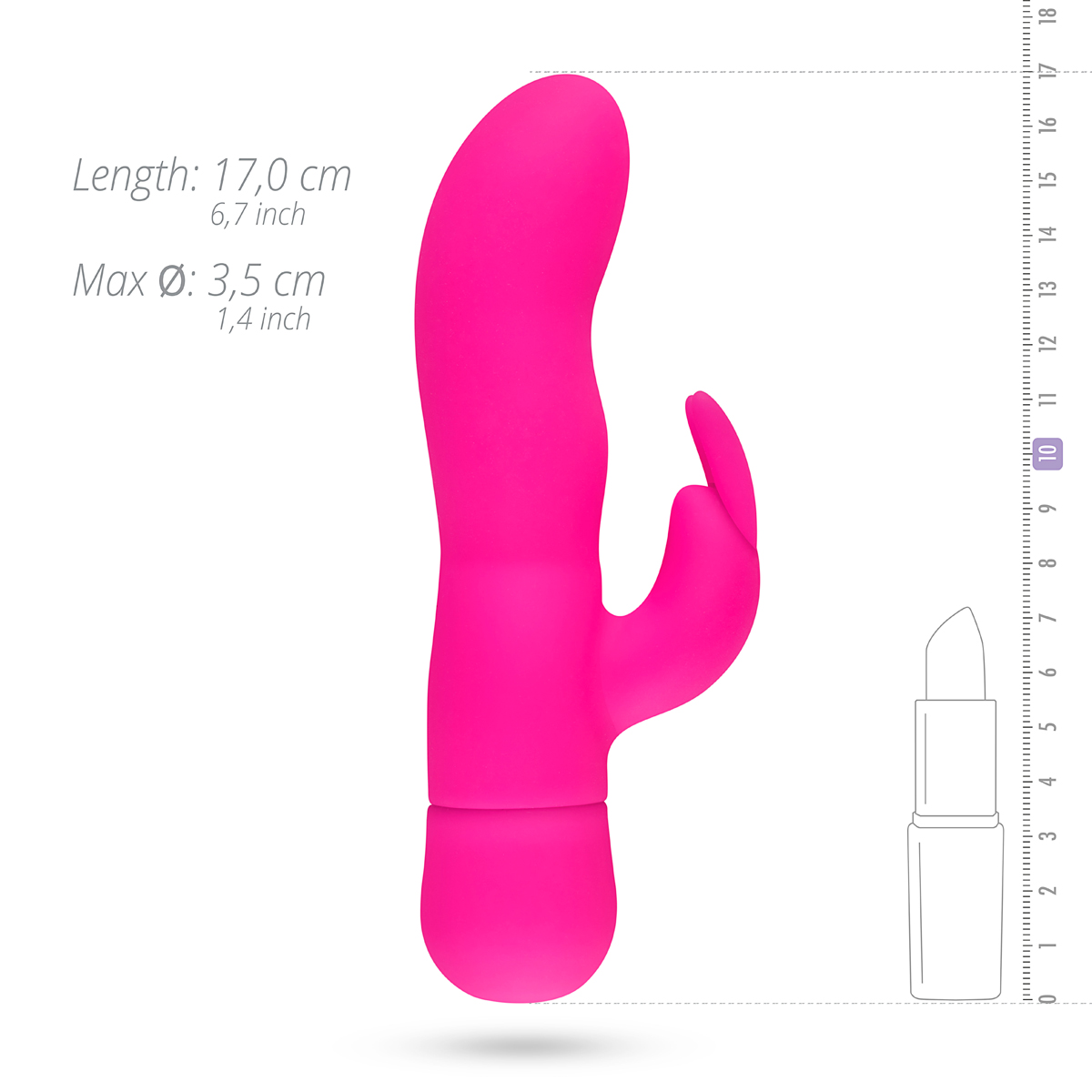 Il vibratore a coniglio della collezione EasyToys offre un piacere senza fine. Il vibratore rosa dona al modello classico del vibratore a coniglio un tocco moderno con il suo esterno completamente in silicone. Il giocattolo sessuale ha una parte superiore morbida e curva per la stimolazione del punto-G e uno stimolatore clitorideo flessibile. Le orecchie vibranti stimolano direttamente il clitoride con 3 velocità e 7 velocità di vibrazione. Premi il pulsante e scopri la tua modalità preferita! Il vibratore a coniglio è realizzato in silicone e può quindi essere combinato al meglio con un lubrificante a base d'acqua. Pulisci il giocattolo prima e dopo l'uso con un detergente specifico.
